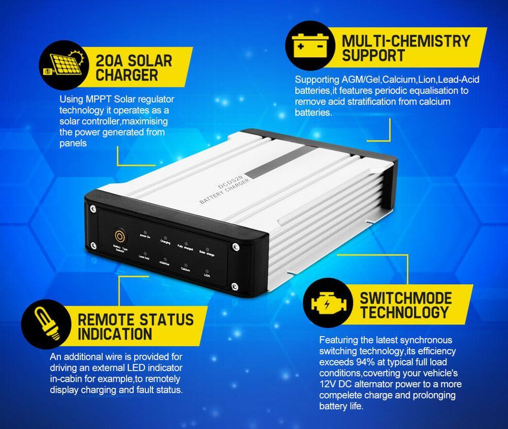20Amp DC to DC Battery Charger MPPT Dual Battery System Kit Isolator Solar 12V