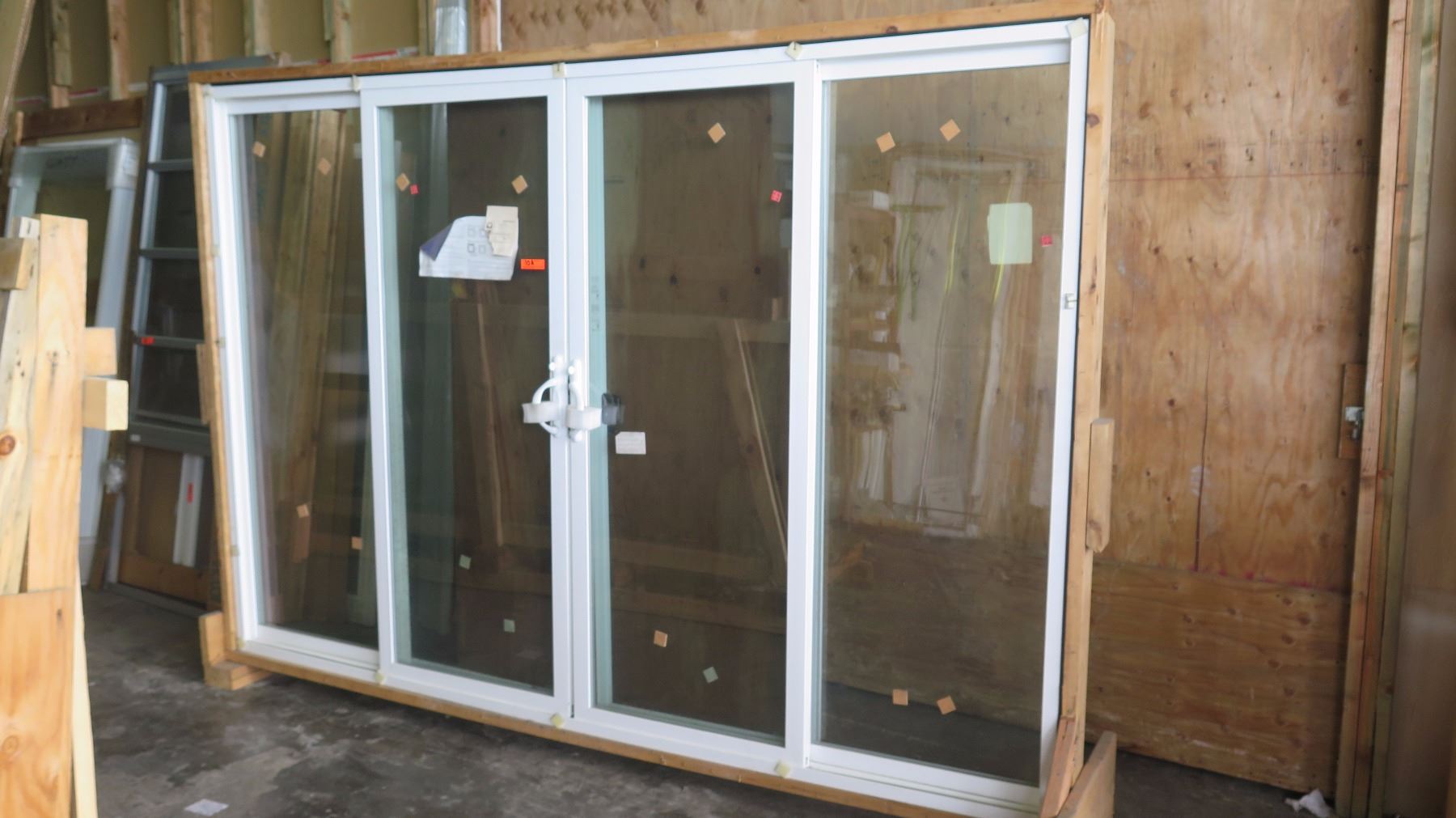 4Panel Patio Sliding Glass Doors w/Screen White, Vinyl, 11713/16” x 793/4" 1258 Retail