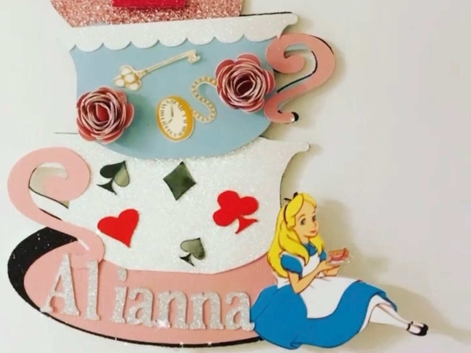 Alice_Wonderland_Topper.jpg 1,200×1,600 pixels Disney pastaları, Doğumgünü partileri, Doğum günü