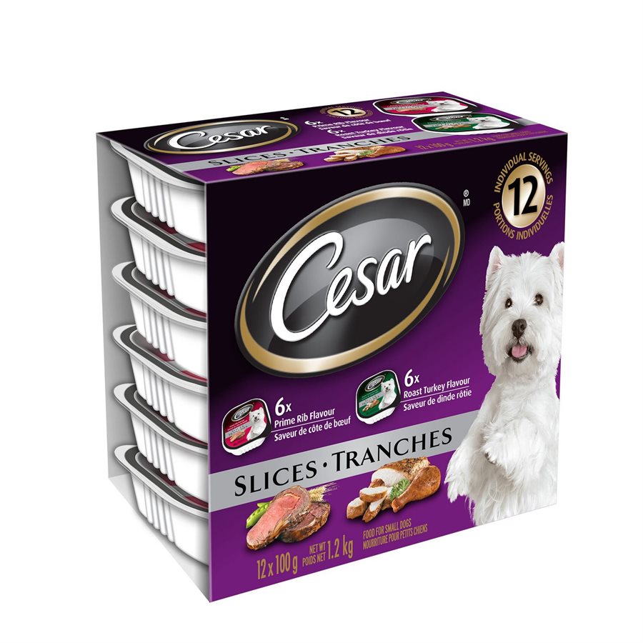 Cesar Classic Loaf Small Breed Adult Chicken, Turkey and Duck Pate Wet Dog Food Variety pk., 3.5 oz. Tray, Pack of 24. SKU: 110667799. 4.7 (112) $30.99. Standard Delivery. Same Day Delivery Eligible. Add to Cart. Compare. Cesar Wet Dog Food Classic Loaf in Sauce Filet Mignon and Porterhouse Steak Flavors Variety pk., (12) 3.5 oz. Easy Peel Trays.