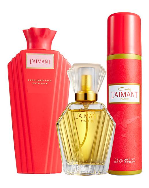 Product Details. L'aimant Body Spray by Coty is derived from the classic L'aimant fragrance. The body spray leaves a lingering scent of L'aimant on the skin which includes classic aromatic, woody and aldehydic notes. Layer with L'aimant PDT to complete your perfuming ritual. Product ID: LAMBS EAN: 5012209046050.