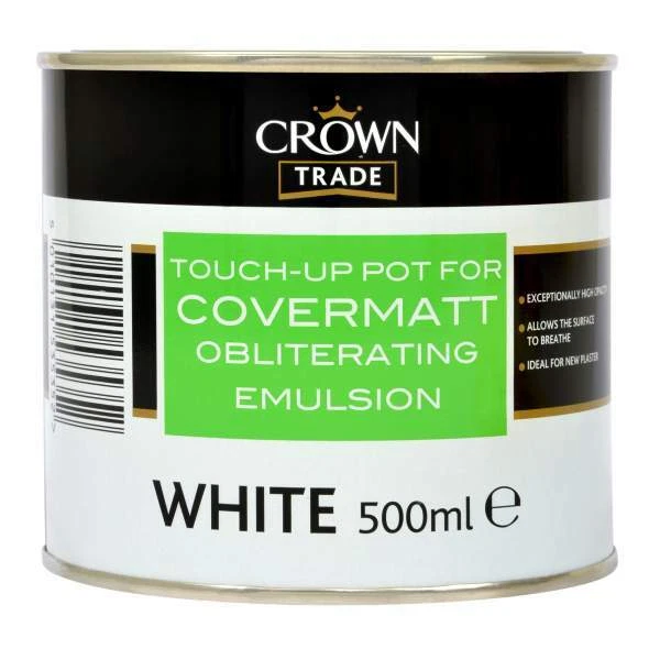 Crown Trade. Covermatt Obliterating Emulsion {{ selectedVariant.VariantSku }} An emulsion specially formulated for the first time decoration of new build interiors, allowing them to dry out without comprimising the paint surface. 1. Select your colour . Ready mixed colours {{ colour.Name}}