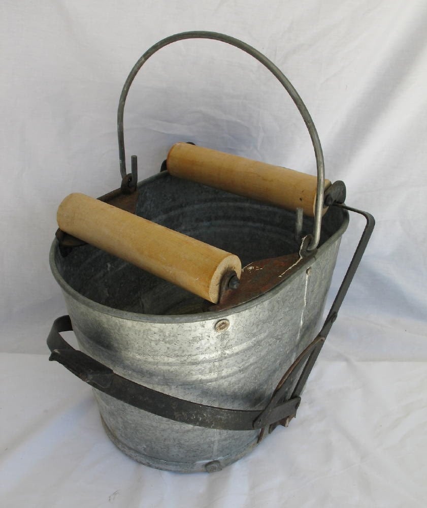 Vintage Mop Bucket Industrial Galvanized Steel by IfindUbuy