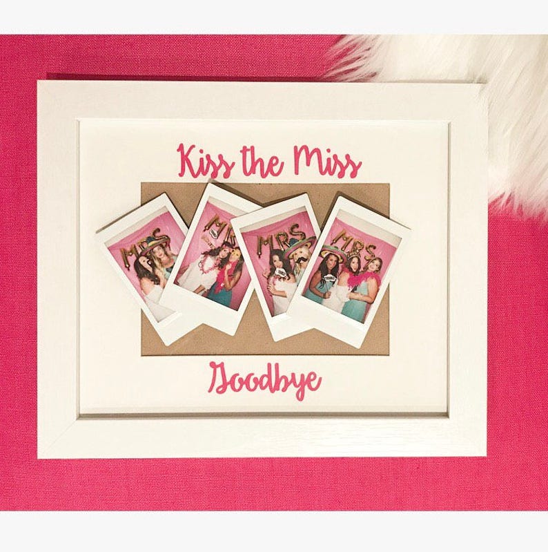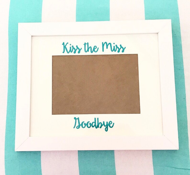Kiss the Miss Goodbye Picture Frame, Bridal Shower Sign, Bachelorette Party Frame, Wedding Gift Bride, Bridal Shower Gift, Miss to Mrs Gift. (18.7k) $24.50. Kiss the Miss Goodbye! Picture Frame Mat - Bachelorette Party - Bachelorette Gift - Kiss the Miss - Framing Mat. (11.1k) $7.95.