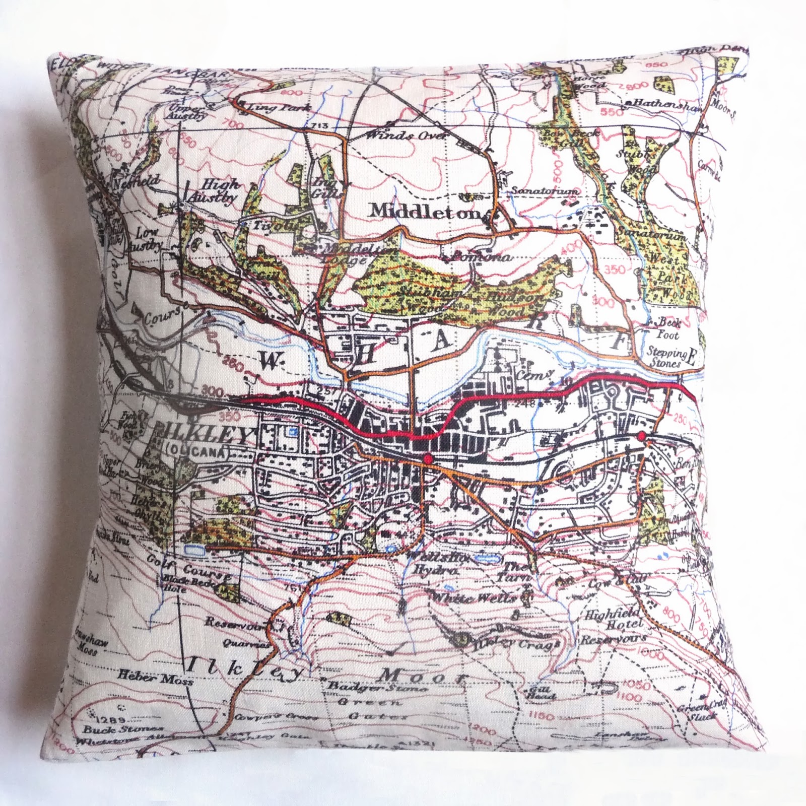 Map Cushions Ilkley and Skipton
