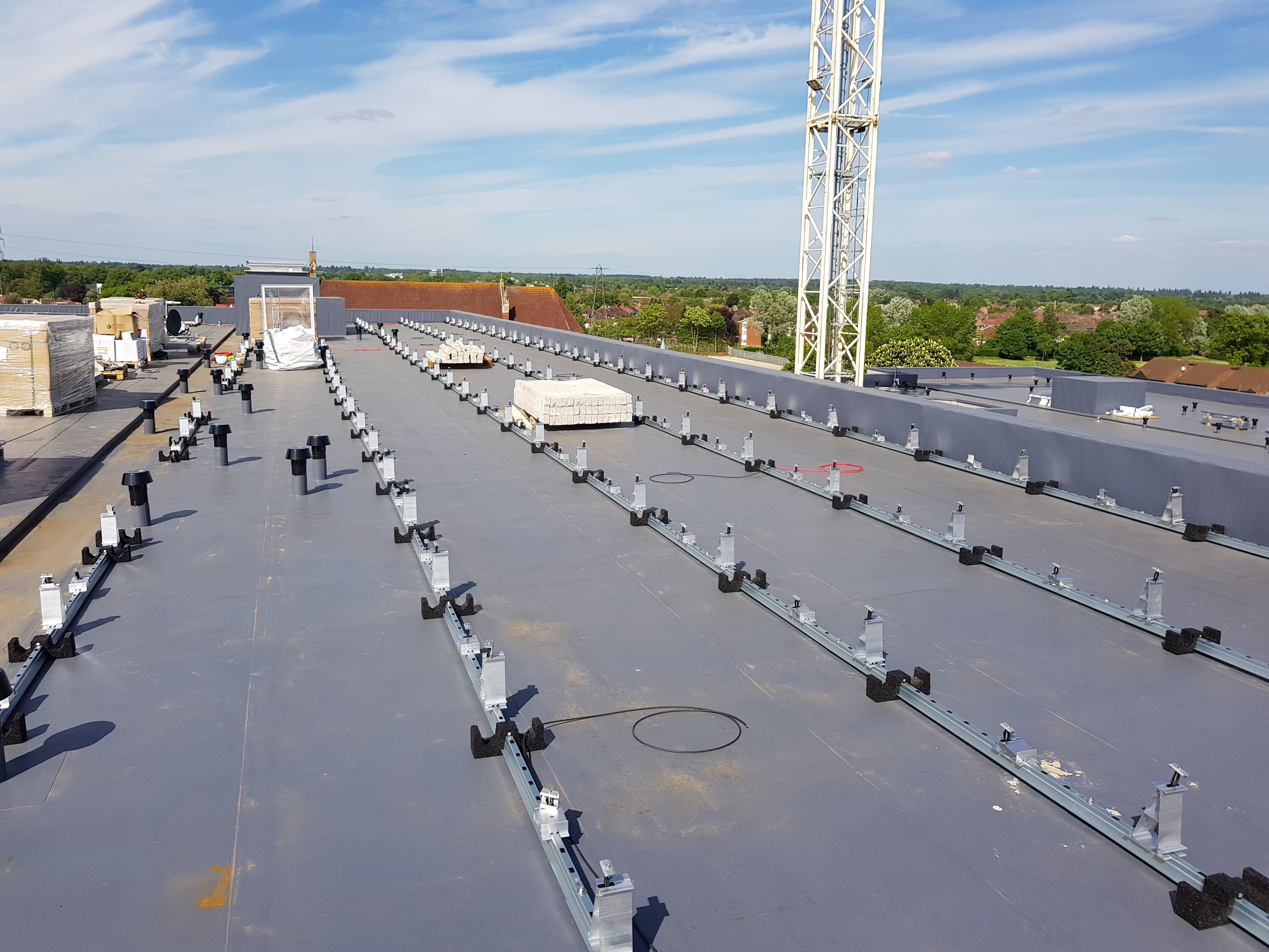 The Van der Valk rail mounted flat roof system provides a standardised, reliable flat roof mounting solution that still allows the flexibility for complex designs. With a thought out design which allows a panel to be mounted in 3 - 4 minutes, allowing a small team to tackle large projects more efficiently.