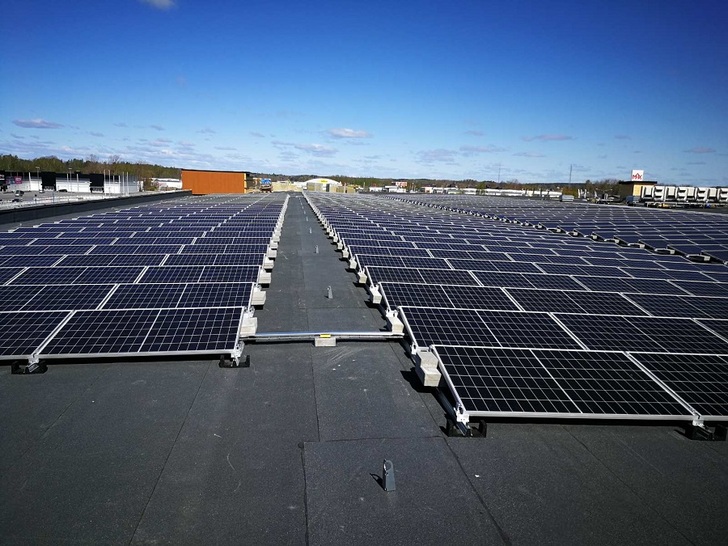Van der Valk solar mounting is a flat roof ballasted system, meaning no roof penetrations are required to fit the mounts. The solar mounting systems for flat roofs from Van der Valk Solar Systems have been developed with all due attention for roof and wind load, so they comply with the highest safety standards..